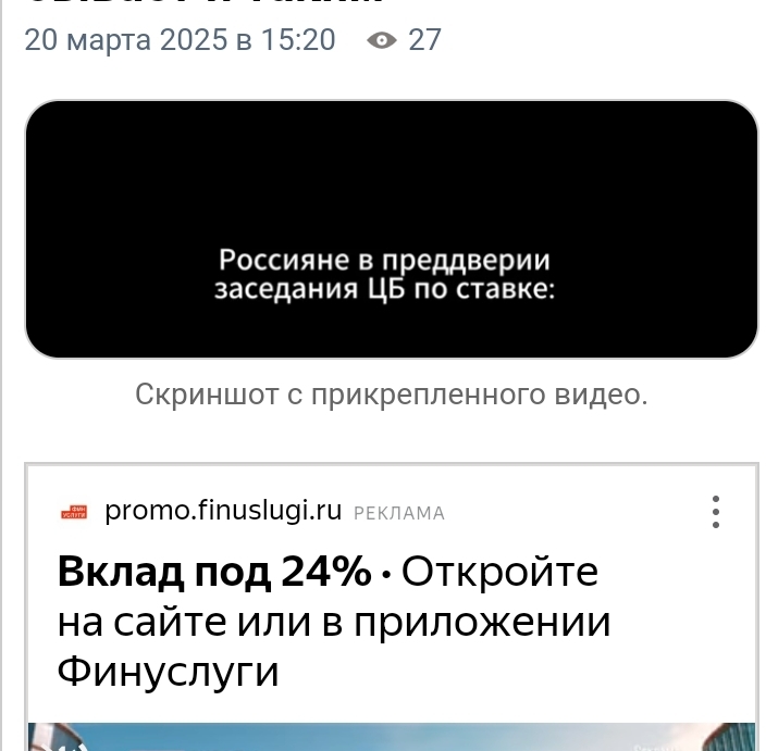 А тем временем в рекламе, сопутствующей этой публикации ещё вылезают предложения по размещению вклада под 24%...