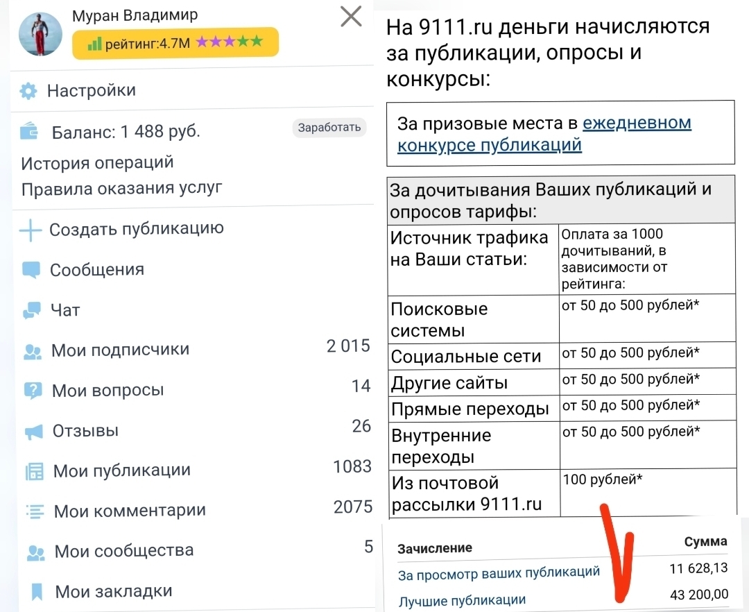 13 позиций на 9111. ru до того, чтобы получать 300 рублей за 1000 дочитываний! Сколько потребуется дней до этого момента?
