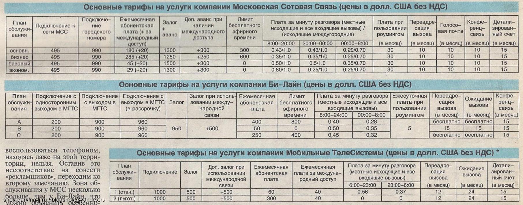 А это совсем древние тарифы - было время - было и так: