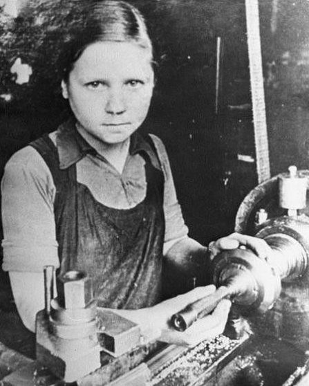 А вот это Вера Тихова, обычная простая девочка. Когда началась блокада Ленинграда Вера пошла работать в цех на городской завод, где быстро всему научилась и ей дали 3 разряд. Работала токарем когда ей исполнилось всего навсего 15 лет. Выполняла полторы взрослые нормы в блокадном Ленинграде. После войны эту девочку начали называть не иначе как "Блокадная Джоконда".