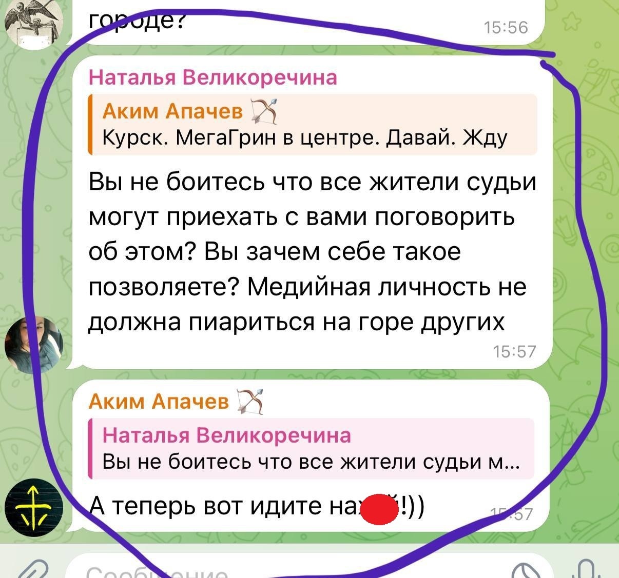 Не оценил и Александр Хинштейн, временно исполняющий обязанности губернатора Курской области. В своем телеграмм канале он осудил действия Апачева.