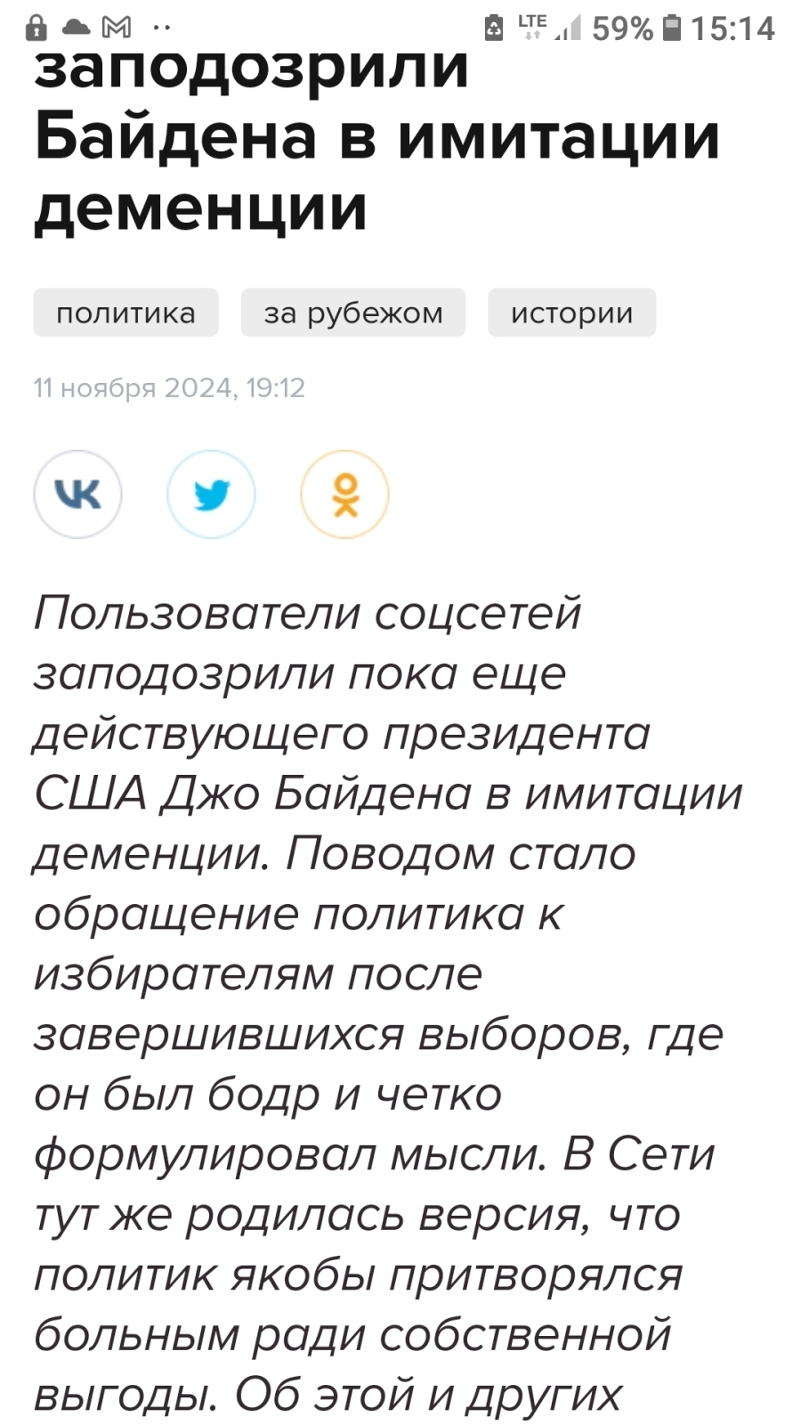 Ничего по этому поводу сказать не могу, но отмечу, что многие заметили, что после выхода из предвыборной гонки, Байден стал вполне себе нормальным, во всяком случае, для своего возраста. ☺️