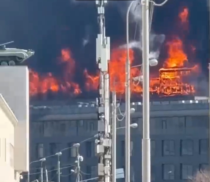 Сильный пожар в центре Москвы — горит здание на улице Тимура Фрунзе