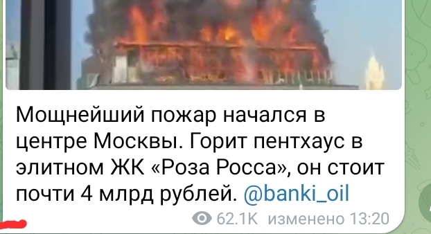 "Горит пентхаус в элитном ЖК «Роза Росса», он стоит почти 4 млрд рублей" но не факт, что это действительно так