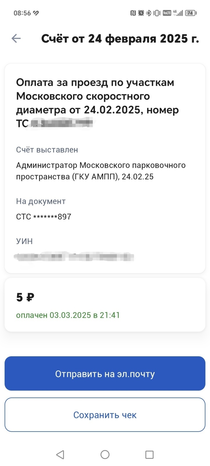 Однако, утро 27 марта стало для меня совсем недобрым. На электронную почту пришло сообщение, что мне выставлен штраф за неуплату проезда по МСД. 😨
