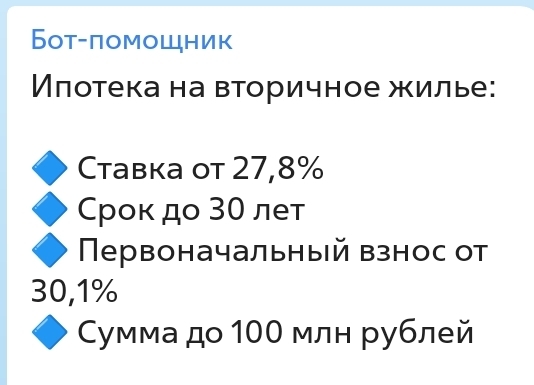 Запрос Боту-помощнику в приложении банка: какова ставка и какие условия?