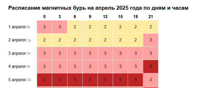 Расписание магнитных бурь на апрель по дням и часам