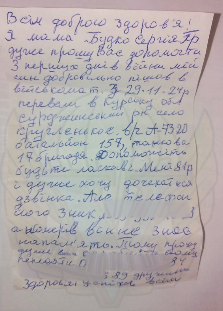 Она попросила того, кто найдет письмо, сообщить о судьбе ее сына Сергея Будко и написала свой номер телефона. Послание было адресовано его украинским сослуживцам, но наш десантник, полагая, что украинское командование может оформить бойца как без вести пропавшего (БВП), чтобы не выплачивать компенсацию, решил связаться с матерью бойца. Telegram-канал также опубликовал видео звонка.