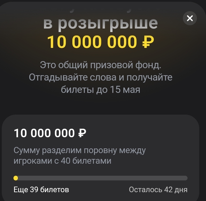 Для получения 40 билетов нужно как минимум 40 дней заходить в игру и правильно отгадывать слово из 5 букв. На это дают 6 попыток.