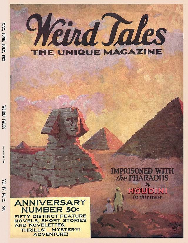 Ярким примером является Г.П. Рассказ Лавкрафта « Под пирамидами», написанный в 1924 году для журнала Weird Tales по поручению иллюзиониста Гарри Гудини.