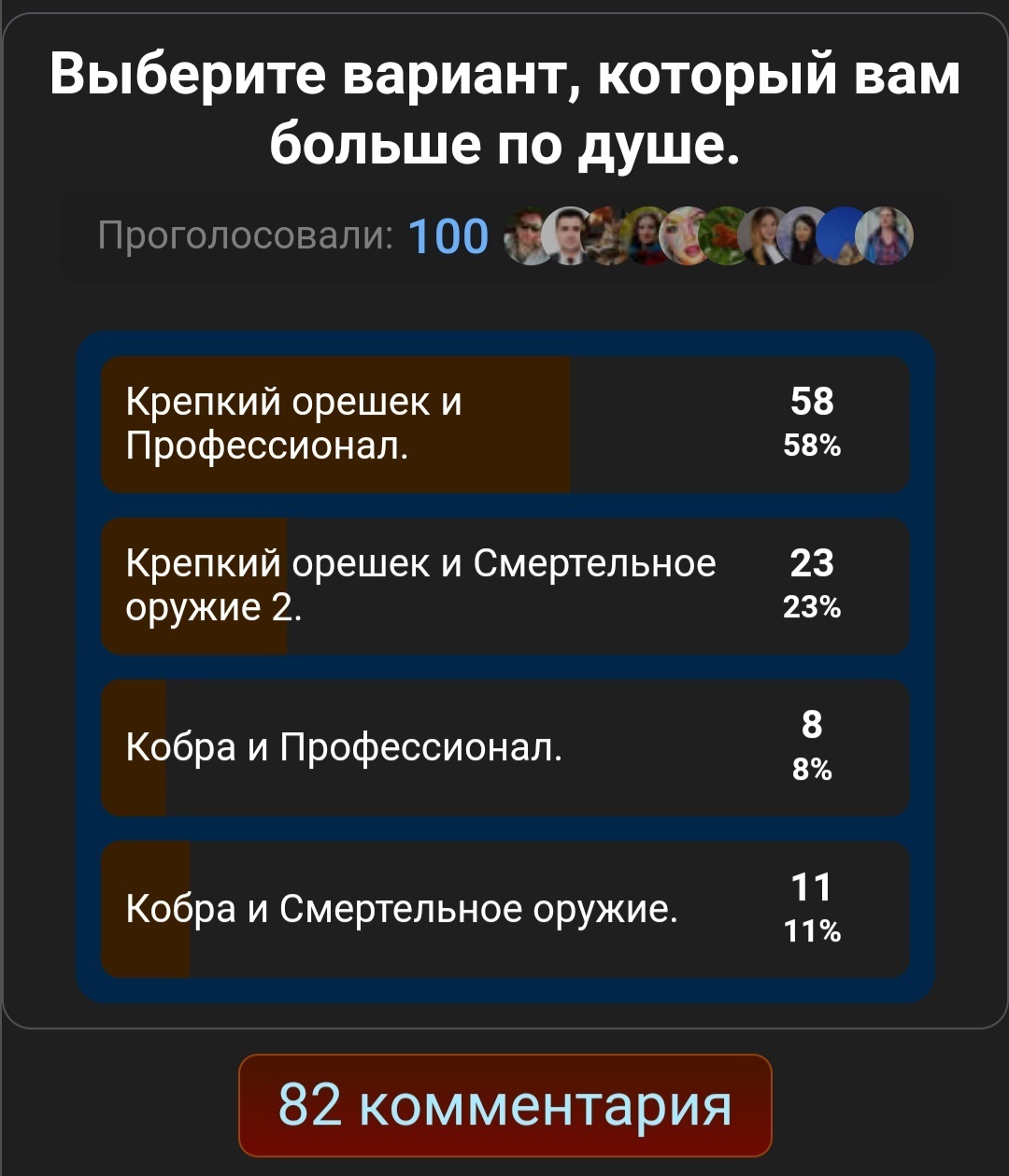 Киномания. Лучший боевик восьмидесятых годов. Версия сайта 9111. Плей-офф. 1/8 финала. Публикация 2 из 4-х