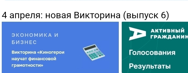 В приложении «Активный гражданин» 4 апреля появилось новое голосование: Викторина «Киногерои научат финансовой грамотности»