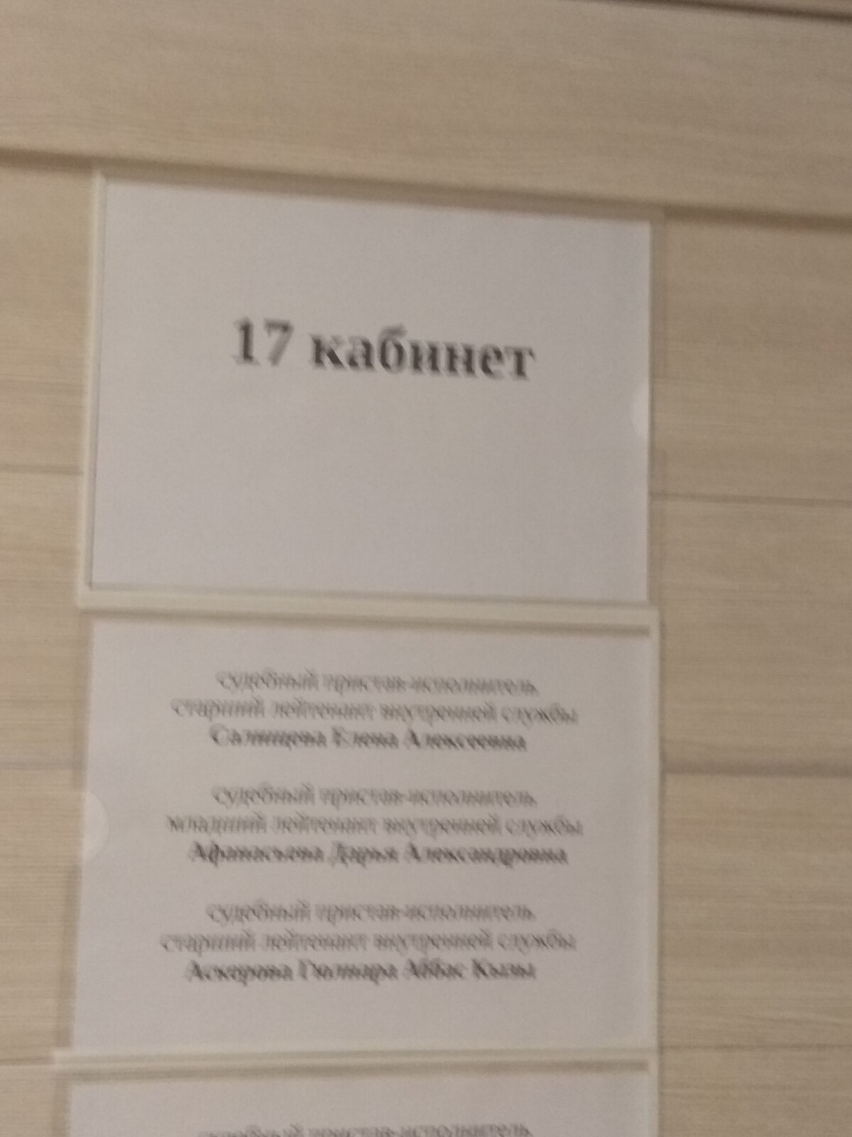 Вчера я пришла, написала заявление и поменяла пристава. Сейчас у меня Анастасия Репина и это совсем другое дело. Я понимаю она ещё молодая и ей далеко до Бородулиной, ведь на её табличке на дверце кабинета было написано (младший лейтенант) но звание роли не играет, главное какой человек в душе.