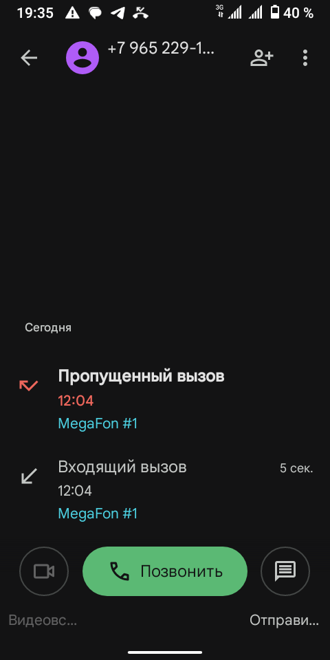 Сегодня в полдень мне на Мегафон поступило два звонка с неизвестного номера +7-965-229-12-09. На первый поступивший звонок с этого номера я не взяла трубку. Но, сразу же поступил второй звонок...