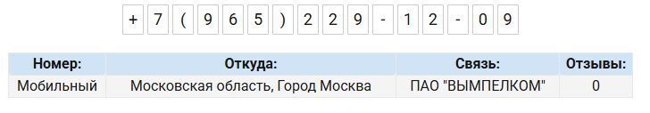 Сегодня в полдень мне на Мегафон поступило два звонка с неизвестного номера +7-965-229-12-09. На первый поступивший звонок с этого номера я не взяла трубку. Но, сразу же поступил второй звонок...