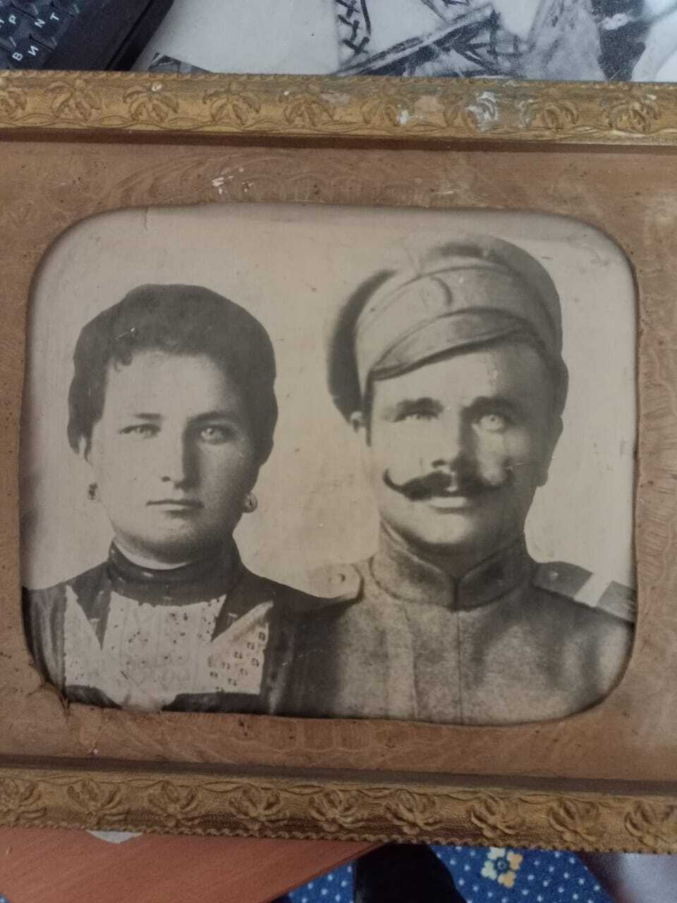 На втором по отцу. Это казак Ефрем Тычинюк и его жена Екатерина. Бабу Катю я застал на закате ее жизни. Статная и строгая. Их дочь Александра Ефремовна Тычинюк тоже прошла вместе со своим мужем Иваном Александровичем Корзухиным (капитаном, нелетающим летчиком, ибо с осколком в голове летать не разрешали) все вторую мировую войну стрелком-радистом, это про бабушку) закончив ее в сентябре 1945-