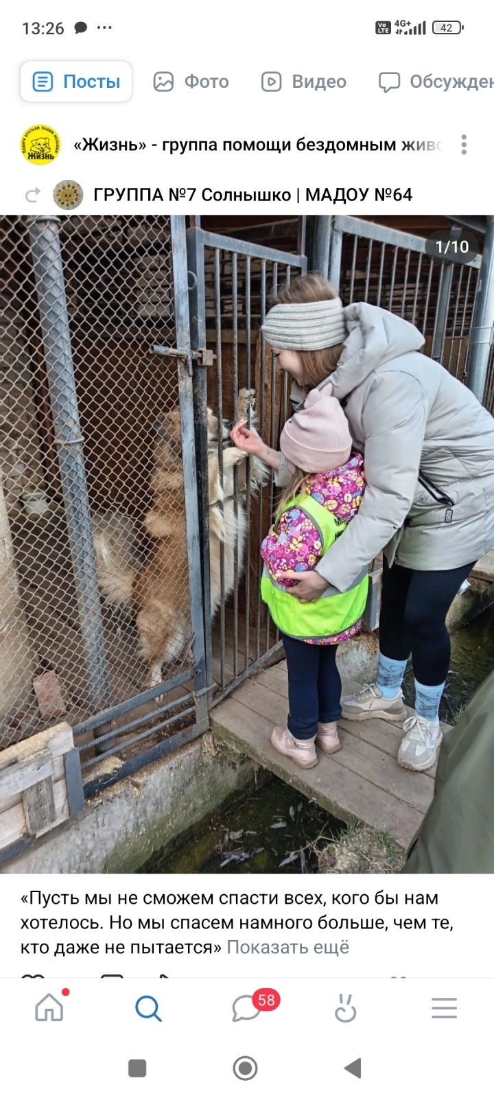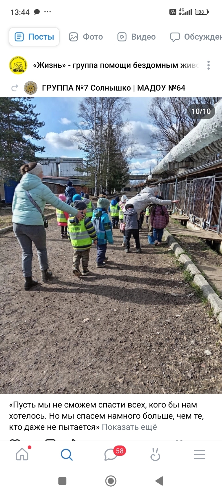 Скрины с сайта волонтёрской группы "Жизнь"; часть работы – дети в городе и собаки.