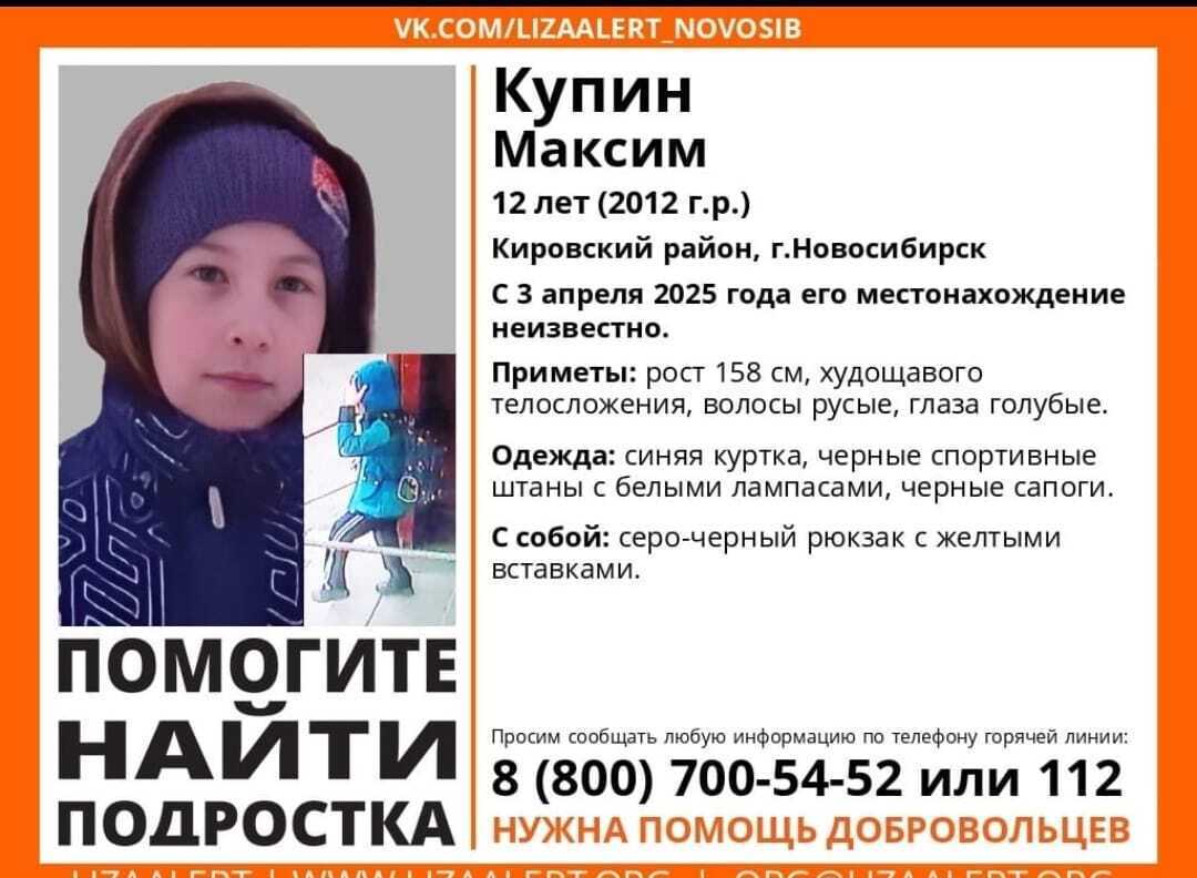 Всю информацию - Новосибирск, Кемерово, Новокузнецк, Томск - передавайте непосредственно в поисковую группу - телефон указан на фотографии. Парнишку видели в данном направлении. Фотография не ворованная!