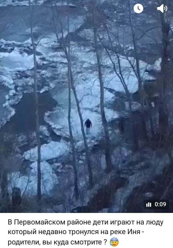 На реке Иня ледоход. Подростки катаются на льдинах. Кто-то же надоумил. Сам-то поди в одиночку не полезет. Скорее всего кто-то обещал "приз за смелость".