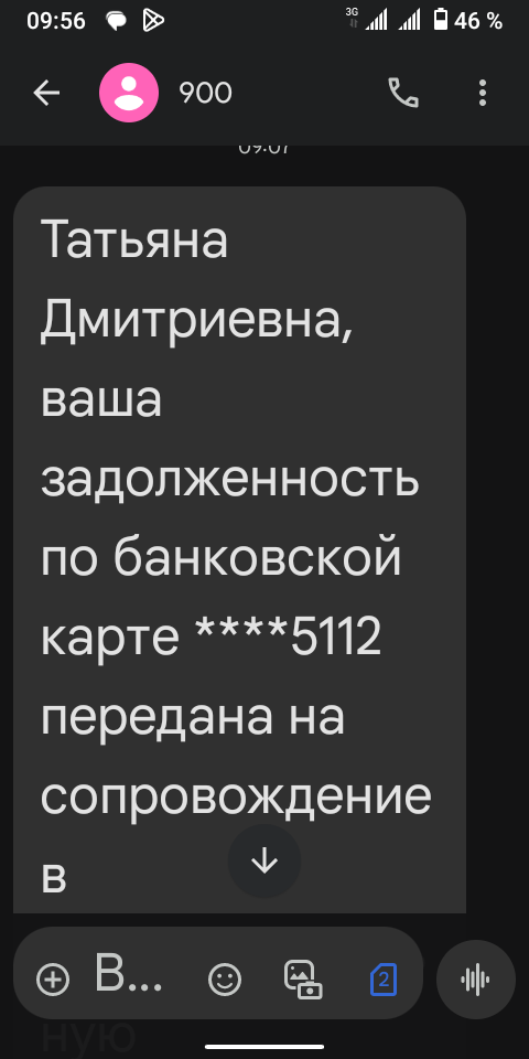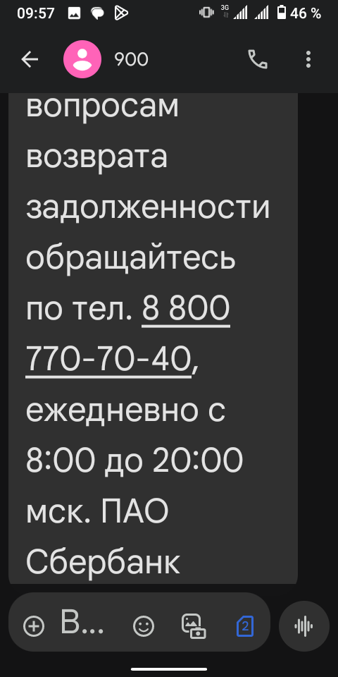 Я прекрасно понимаю, что срок исковой давности ДАВНО прошёл! Но нервы-то опять мне изрядно подпортят... Вот, и сегодня опять пришла СМС-ка от Сбера следующего содержания...
