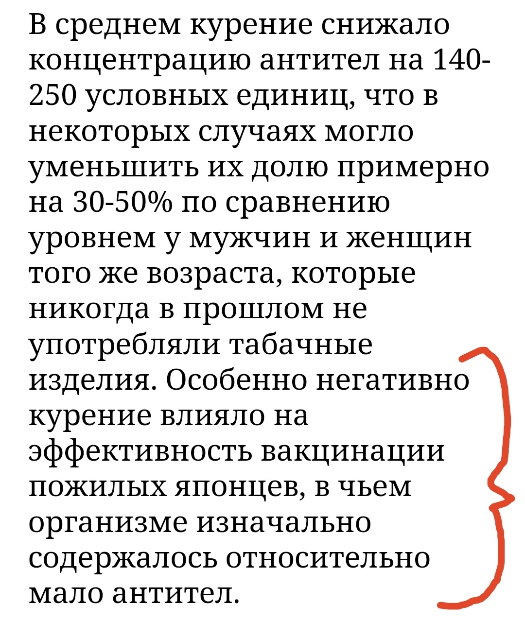 Хотя ранее Японские учёные установили, что при вакцинации прививкой от ковид 19 у курильщиков было следующее: