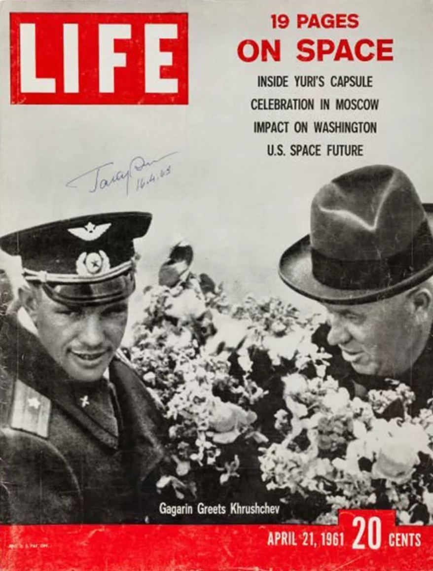 Обложки зарубежных журналов, посвящённые первому человеку в космосе, 1961: