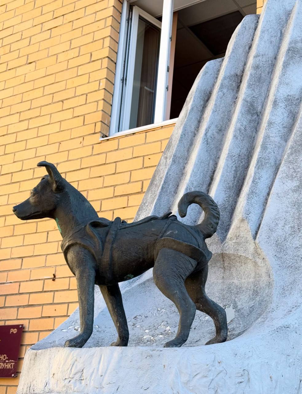 Памятник собаке Лайке, первому живому существу, побывавшему в космосе. Москва, Петровско-Разумовская аллея, 12А