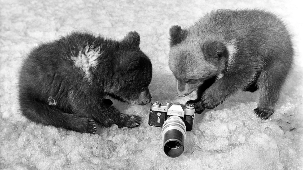 Может быть так, что медведь теперь этот фотографом стал с трофейным фотоаппаратом))