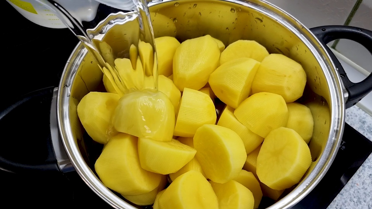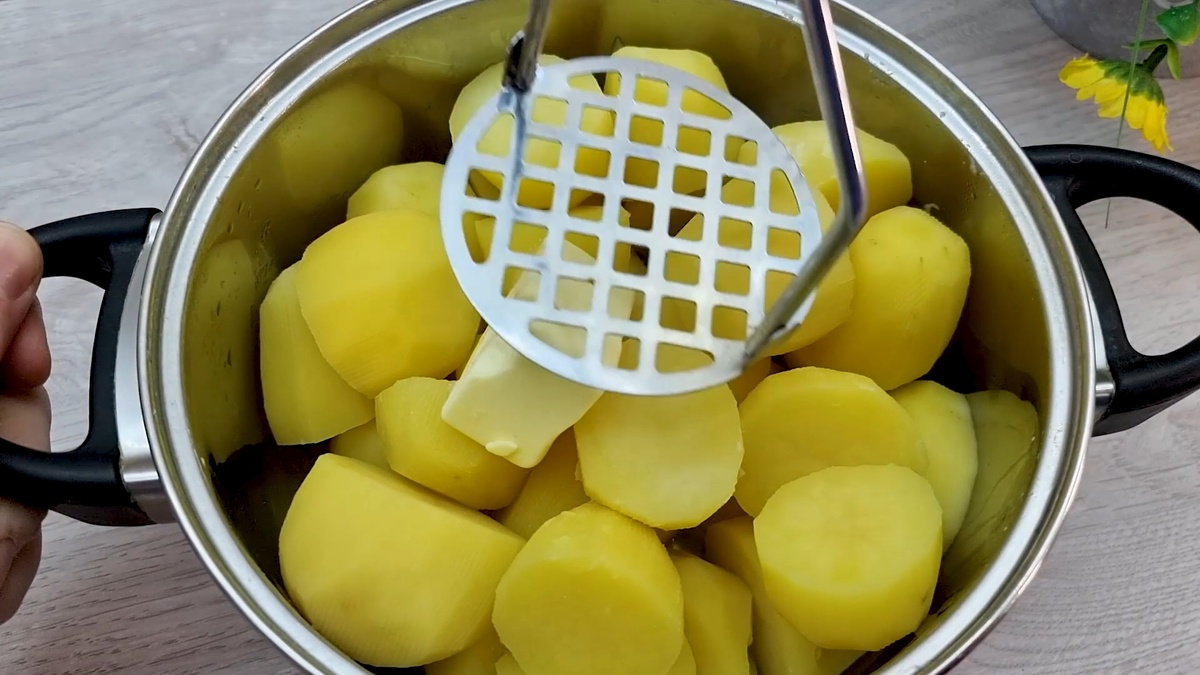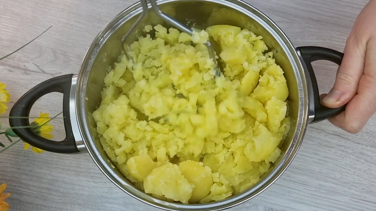 1 кг картофеля очистить и отварить в подсоленной воде. С готового картофеля сцедить воду и добавить 80-100 г сливочного масла, сделать картофельное пюре