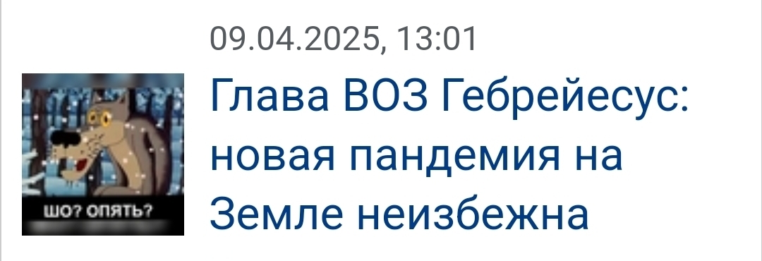 Глава ВОЗ Тедрос Аданом Гебрейесус неоднократно уже заявил о неизбежности новой пандемии, назвав ее возникновение не теоретическим риском, а «эпидемиологической определенностью». Подробнее ➤