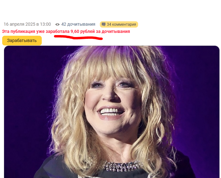Ваше «кислое» мнение мне не интересно совсем, как всю жизнь была не интересна Пугачева, так для меня она и осталась. О каком таланте Вы говорите? Все, нет таланта, она его сама перечеркнула. Хотя да, у каждого свой талант, для кого то и Бандера с Гитлером таланты, поэтому с Вами даже спорить не хочу.