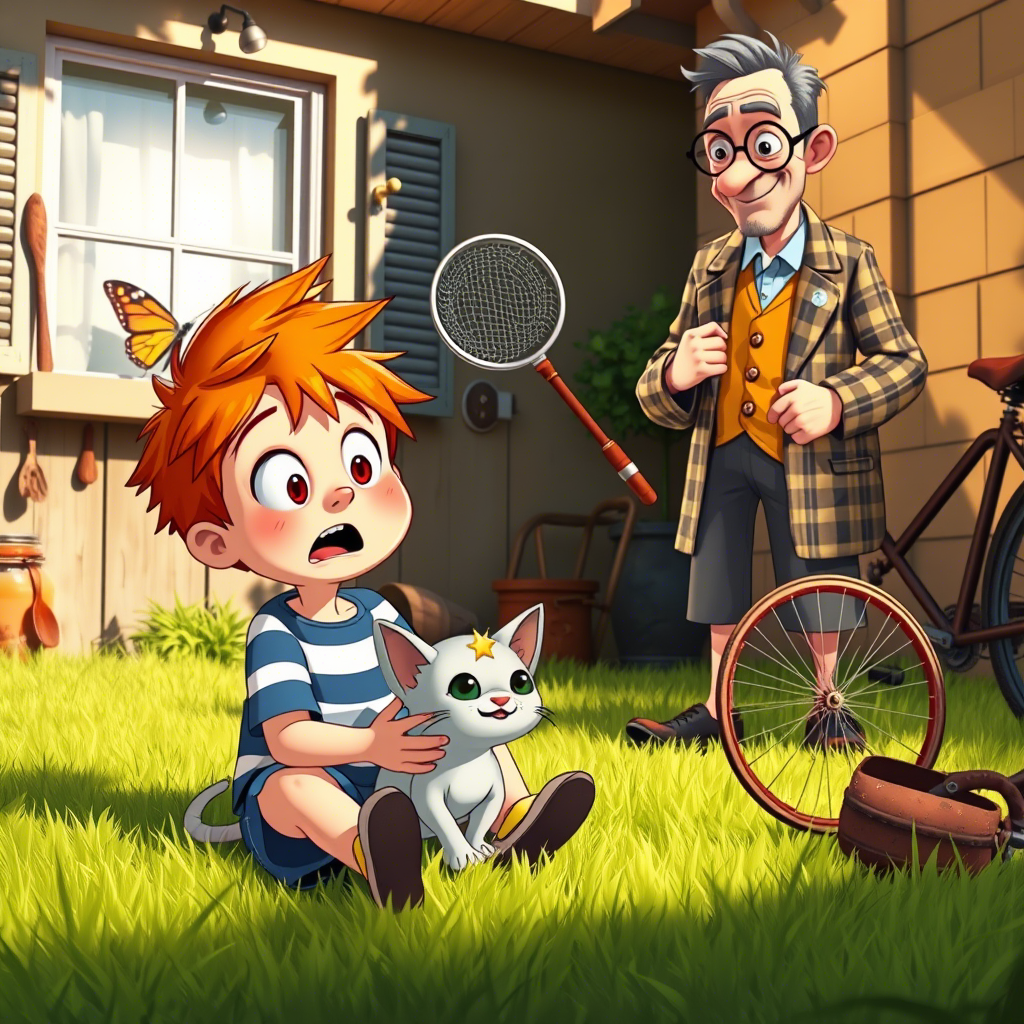 Вдруг за окном раздалось громкое жужжание. На подоконник приземлилась огромная механическая бабочка, а на её спине сидел худой мужчина в клетчатом пиджаке.
