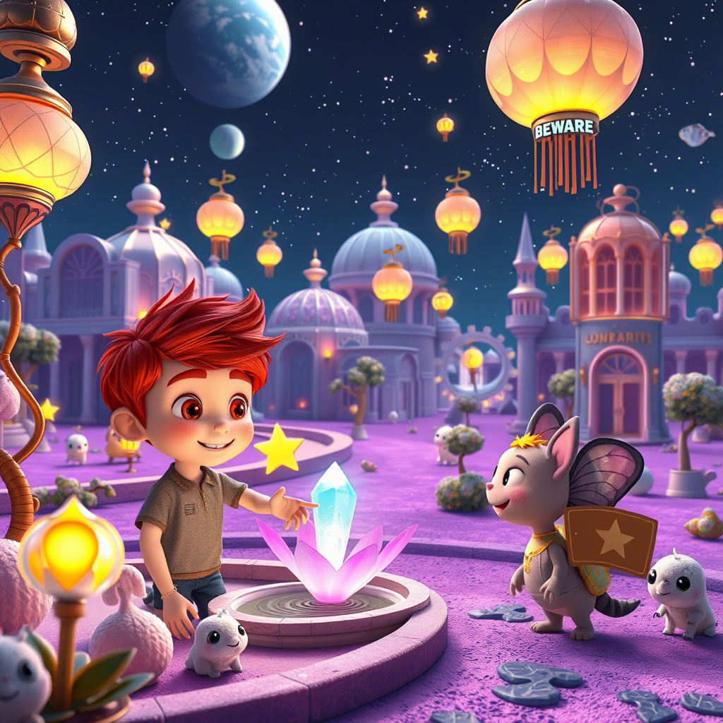 Когда корабль приземлился, Ваня ахнул. Перед ними раскинулся удивительный город: прозрачные купола домов, поющие фонтаны и...