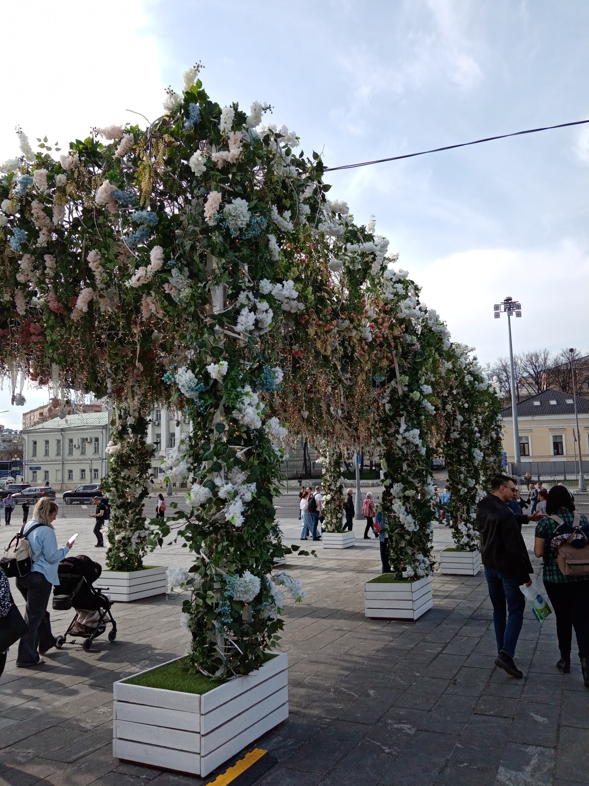 Богослужение и Пасхальный крестовый поход в храме Христа спасителя Москвы. Пасхальные декорации у храма. Всё благоухает.