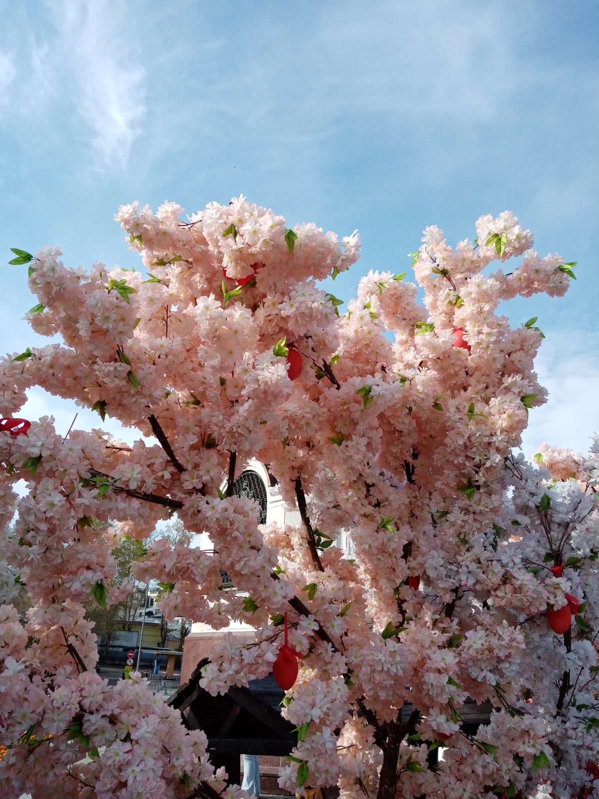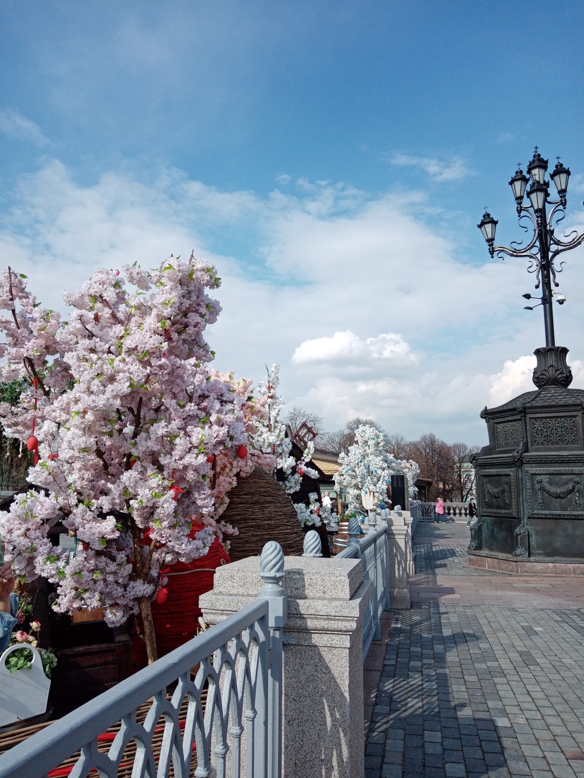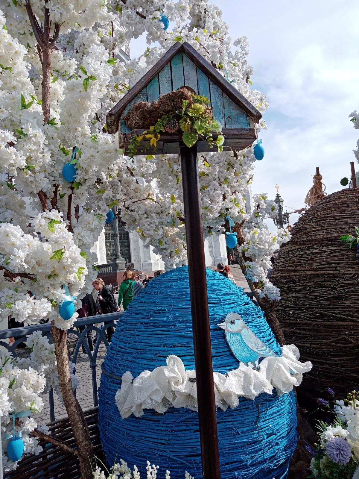 Перед храмом всё было украшено цветами, пасхальными поделками и дикорациями.