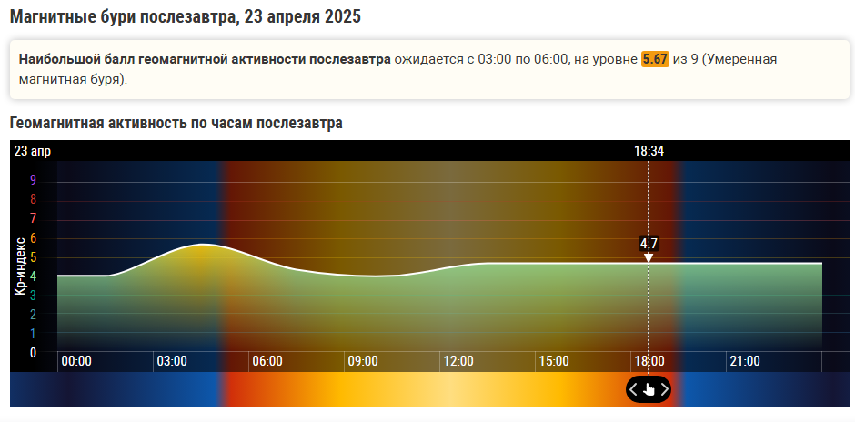 Прогноз магнитных бурь на на 23–24 апреля 2025 года