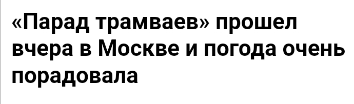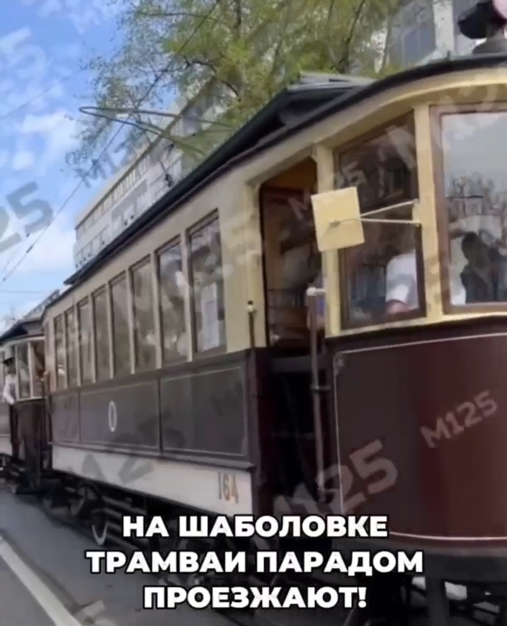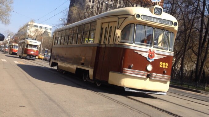 "Парад, организованный в честь 126-летия московского трамвая, состоялся в Москве 19 апреля. Его маршрут прошел по новой трассе: от Шаболовской улицы до Даниловской мануфактуры на Варшавском шоссе и обратно."