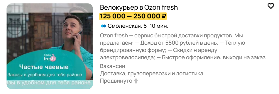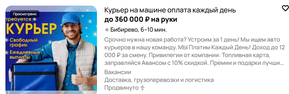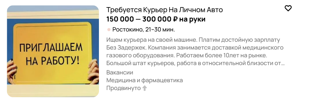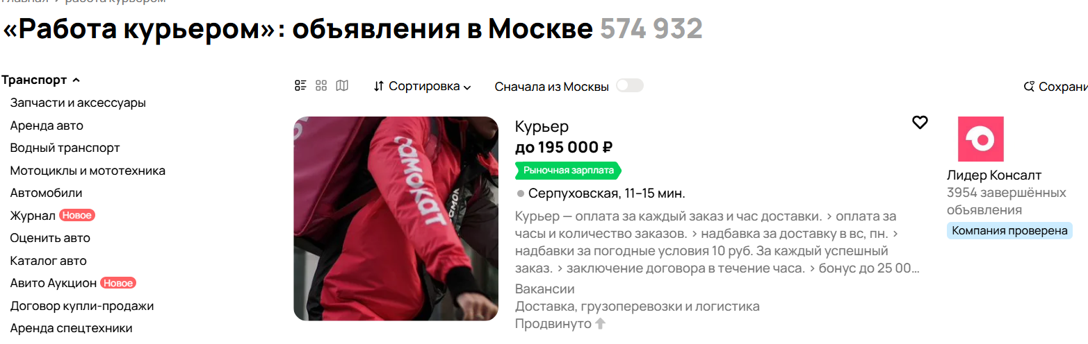 На "Авито" полно объявлений с предложениями поработать курьерами в Москве. С весьма приличными зарплатами: