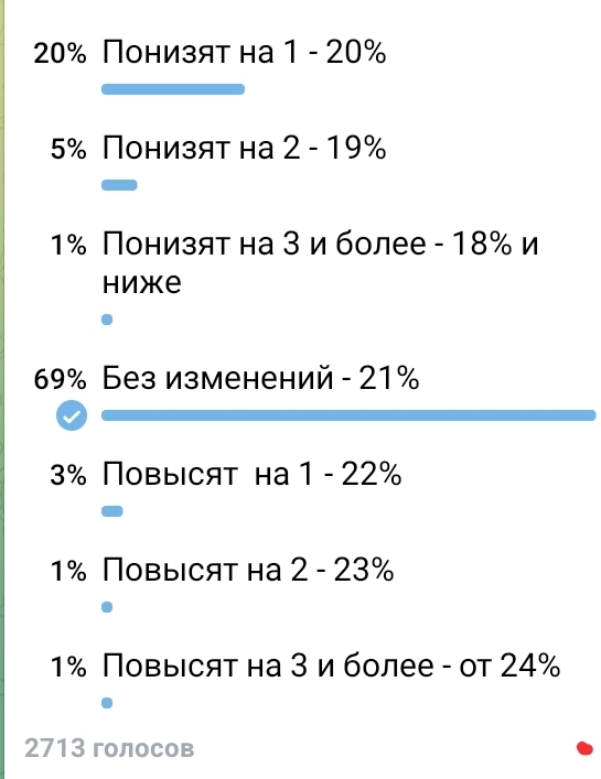Меня волнует, и я думаю, оставят, как есть. Слишком много событий непонятных, многое зависит от переговоров по СВО. Но ЦБ сильно непредсказуем, так что любой вариант может быть...