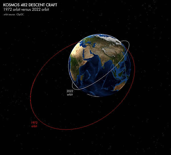 «Космос-482» был космическим аппаратом-близнецом «Венеры-8», который успешно приземлился на Венере в июле 1972 года и в течение 50 минут передавал данные, прежде чем был уничтожен мощным давлением и жаром планеты.