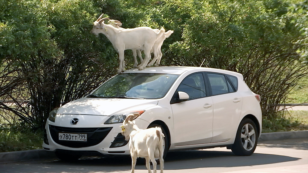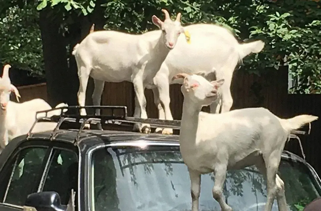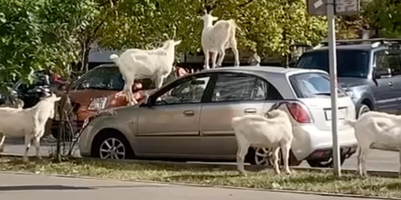 Со стороны весело на все это смотреть, а вот владельцам автомобилей, по крышам которых периодически скачут эти козы - совсем не смешно...)