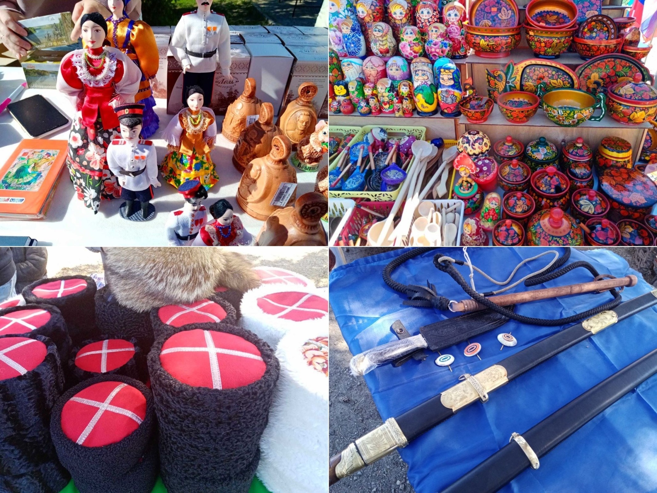 Была организована ярмарка. Продавали всевозможные поделки и сувениры, открытки, украшения, предметы одежды казаков, выпечку и многое другое.