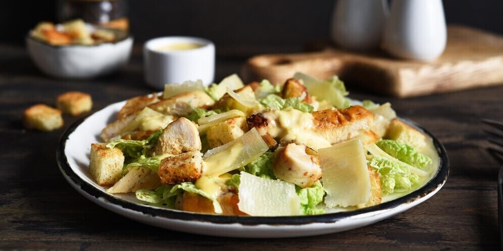Узнайте, как приготовить низкокалорийный Цезарь с куриной грудкой, пармезаном и домашним соусом. Рецепт для сытости, энергии и тонкой талии.