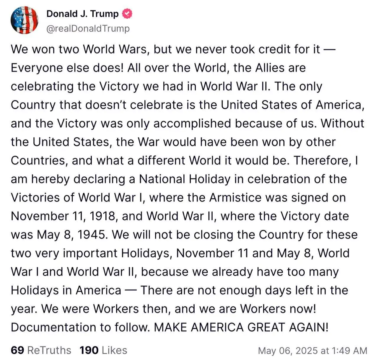 Может быть именно поэтому Трамп и решил переписать историю на свой лад и сделать США победителем в мировых войнах?