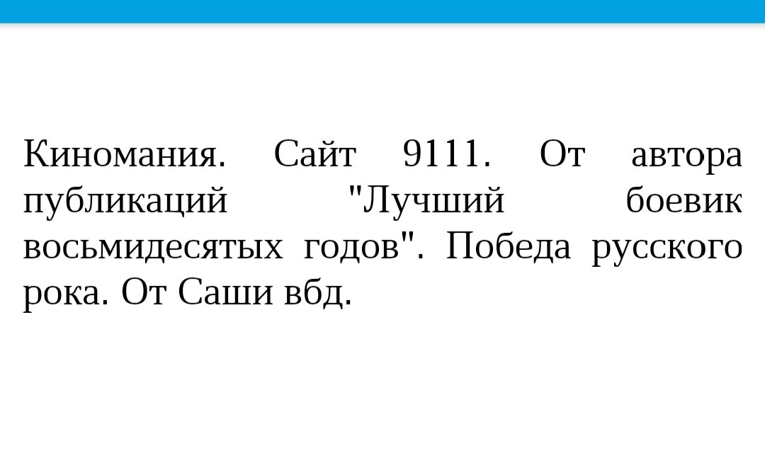 Киномания. Сайт 9111. От автора публикаций "Лучший боевик восьмидесятых годов". Победа русского рока. От Саши вбд.