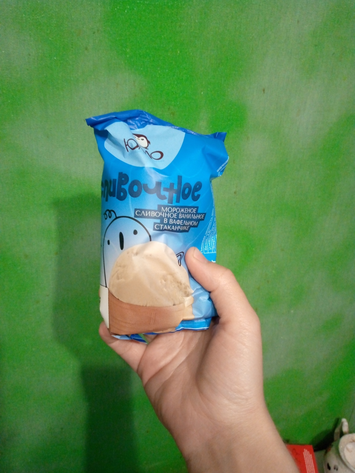 Эксперт одобрил и значит можно самой приступить к трапезе! На мой взгляд вафельный стаканчик вполне приличный, сливочное мороженое обладает ванильным вкусом, но текстура водянистая, ощущаются маленькие кристаллики льда, что говорит о нехватки сливок. Я предпочитаю мороженое по ГОСТу и частенько вспоминаю своё детство, когда мороженое стоило 15 коп, но обладало потрясающим вкусом.