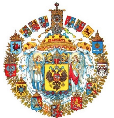 В конце XIX века, а точнее – в 1882 году, помимо Малого и Среднего был утверждён Большой Государственный герб (второй вариант). Большой герб выражает идею единства и могущества России. В его основе, в центре – на золотом щите чёрный двуглавый орёл под тремя императорскими коронами с московской эмблемой на груди. Главный щит с двух сторон держат архистратиг Михаил и архангел Гавриил. На золотой сени надпись: Съ нами Богъ. К этому и вокруг добавлено множество самых разных геральдических деталей, в числе которых гербы земель, составляющих империю. Описывать все их не берусь. Предлагаю самим посмотреть изображение Большого герба Российской империи. Он создает монументальный образ великой, единой и неделимой России.
