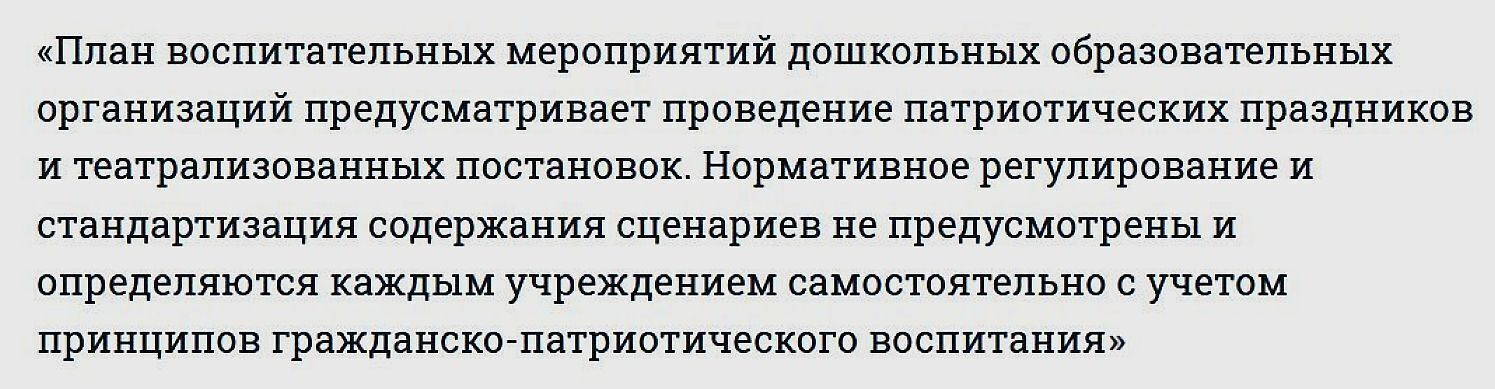 Воспитатели детского сада считают это представление «невинным», однако нашлись люди, которые посчитали что столь трагический сценарий — это явный перебор в патриотической работе с дошколятами.