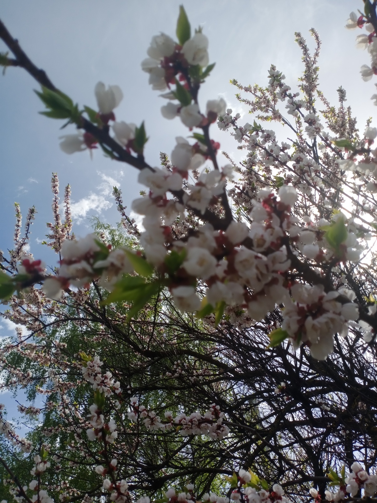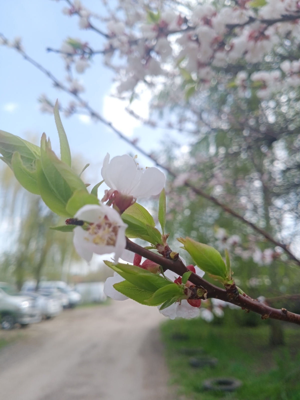 А вот эта красота просто покорила меня! Это нежное сочетание белого с розовым и зелёным! Так приятно было стоять под этим деревом в теплый весенний денёк. Лепестки цветов кружилсь в нежном танце падая мне на голову, я стояла и не могла оторвать взгляда, не могла пройти мимо. Всё же, как прелестна весна!