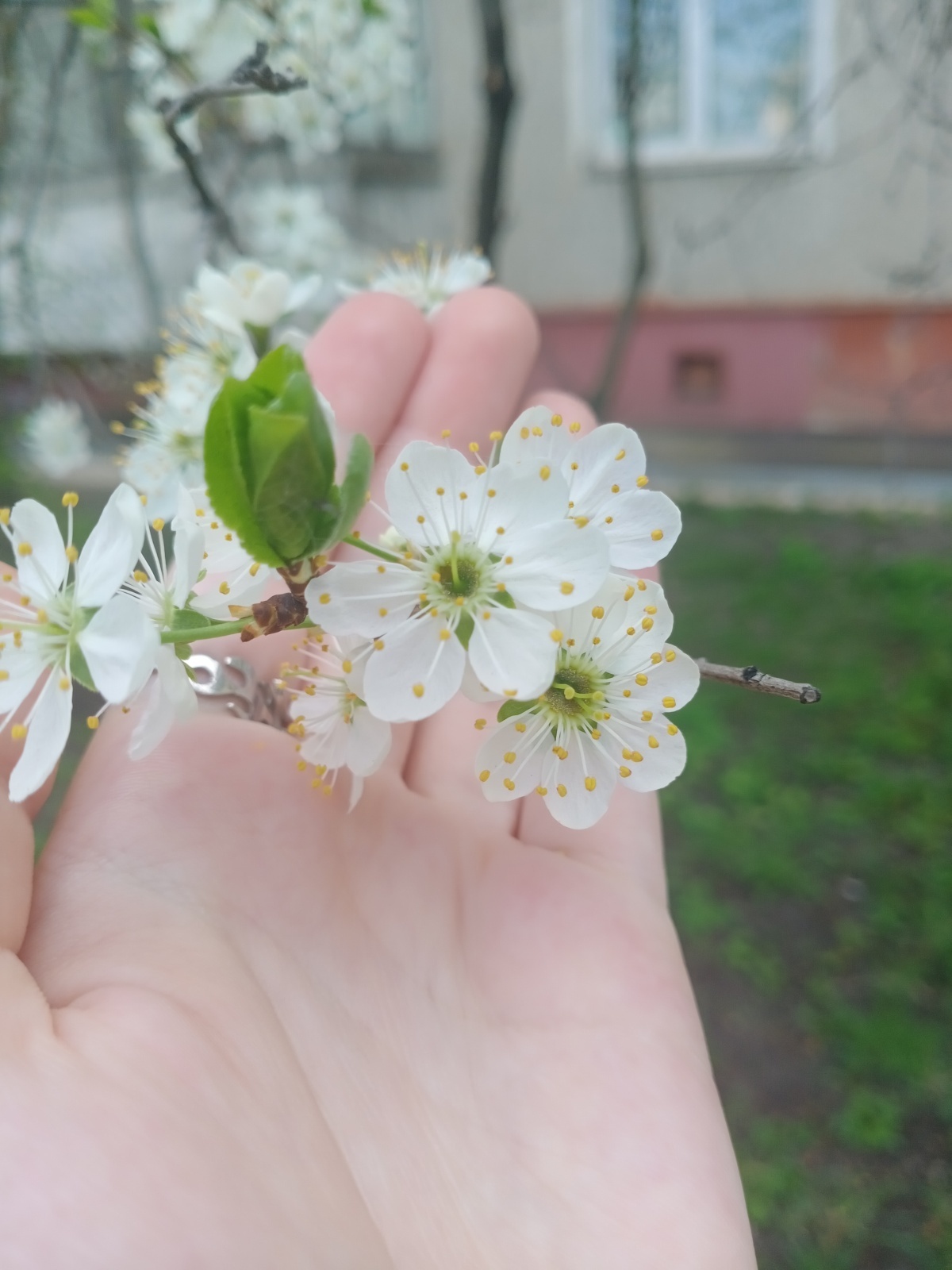 Так же я не смогла пройти мимо этих милых цветочков яблони и готовящихся распуститься листочков. Ну не прелесть ли?